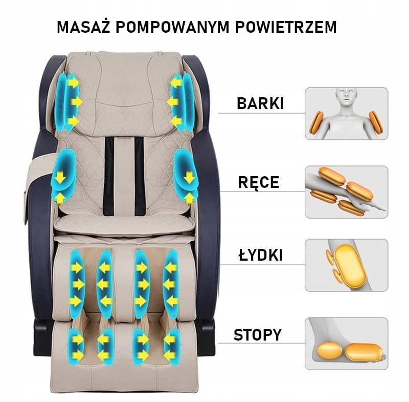 - ✅ - Masaż poduszkami powietrznymi - barki , przedramiona i dłonie, biodra , łydki , stopy