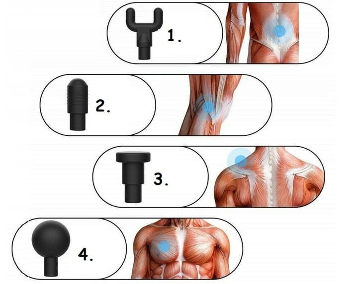 4 Głowice dostępne w zestawie sprawiają iż każdy znajdzie coś dla siebie, masując różne partie mięśni.